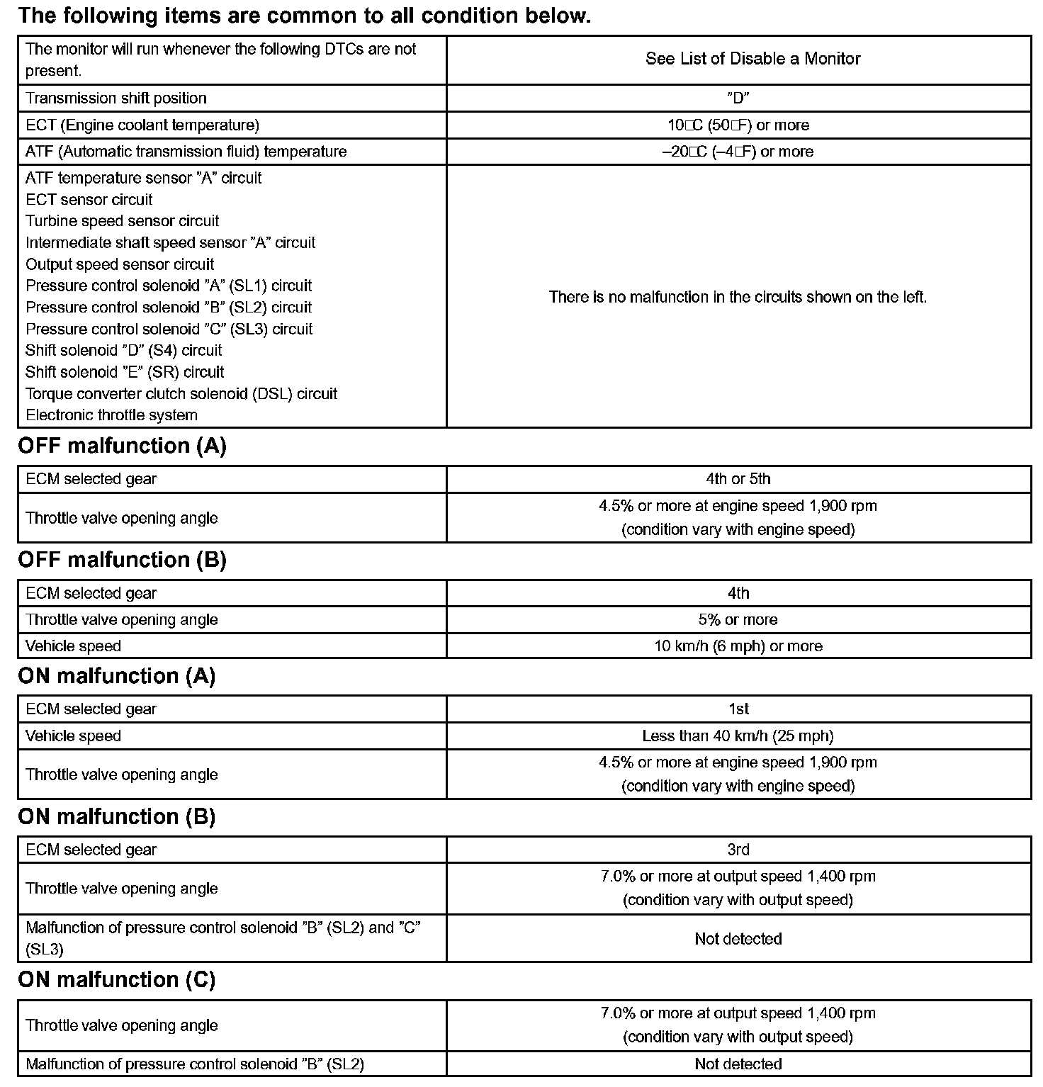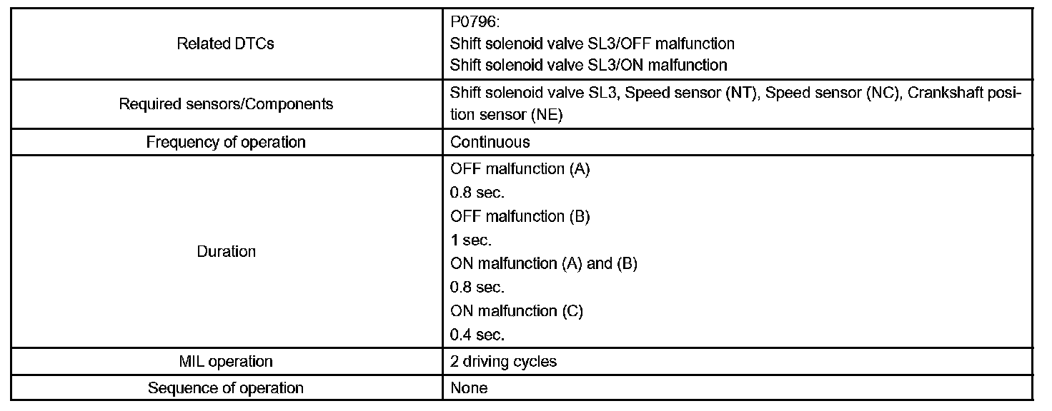 DTC P0796 PRESSURE CONTROL SOLENOID "C" PERFORMANCE (SHIFT SOLENOID VALVE SL3)SYSTEM DESCRIPTION