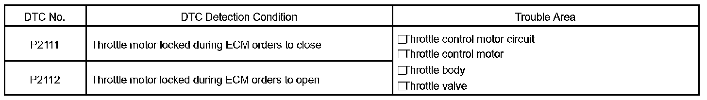DTC P2111 THROTTLE ACTUATOR CONTROL SYSTEM - STUCK OPENCIRCUIT DESCRIPTION