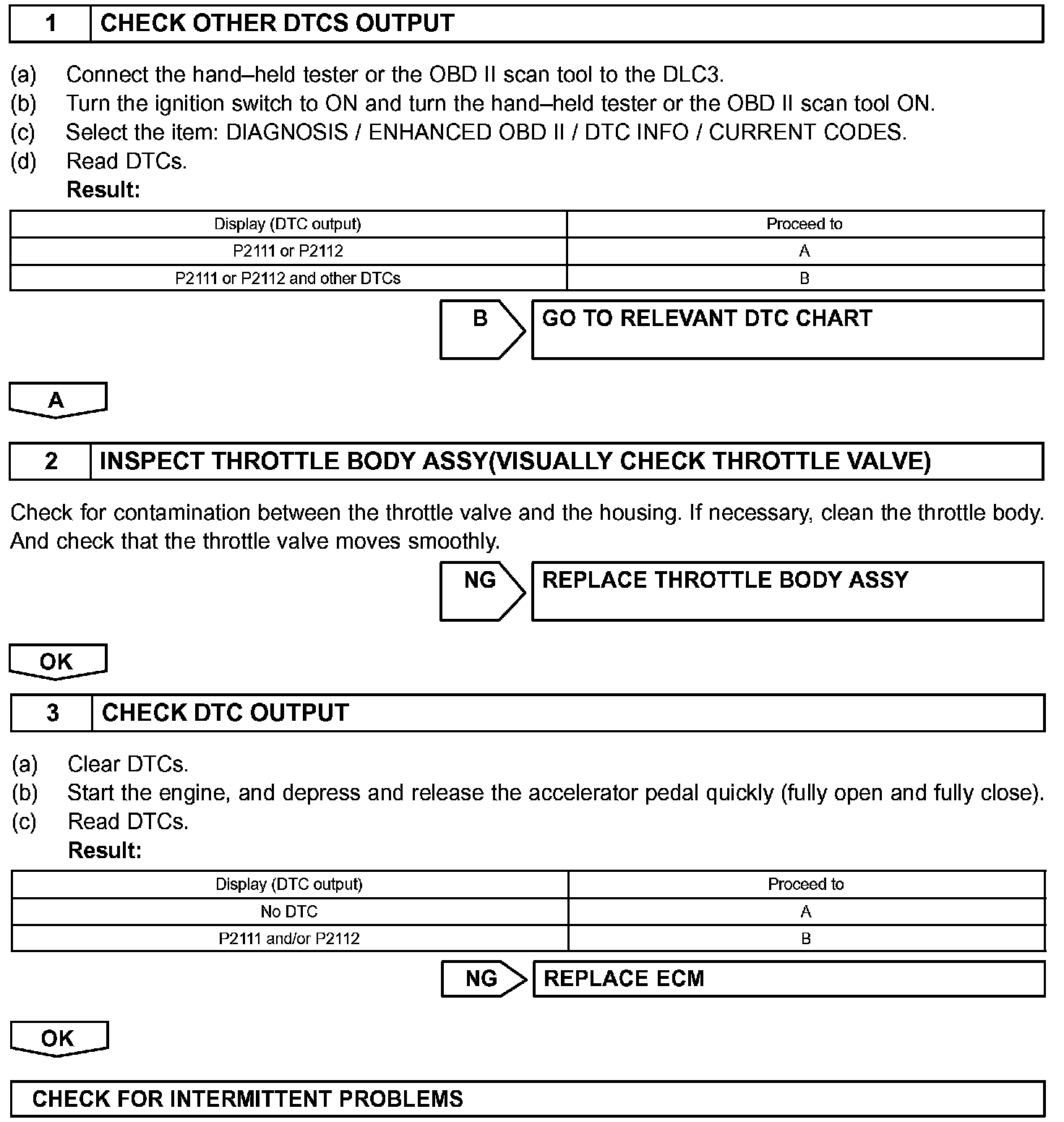 CHECK FOR INTERMITTENT PROBLEMS