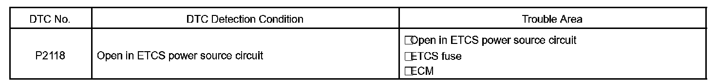 The ECM monitors the battery supply voltage applied to the electronic throttle motor. When the power supply voltage drops below the threshold, the ECM concludes that the power supply circuit has an open circuit. A DTC is set and the MIL is turned on.