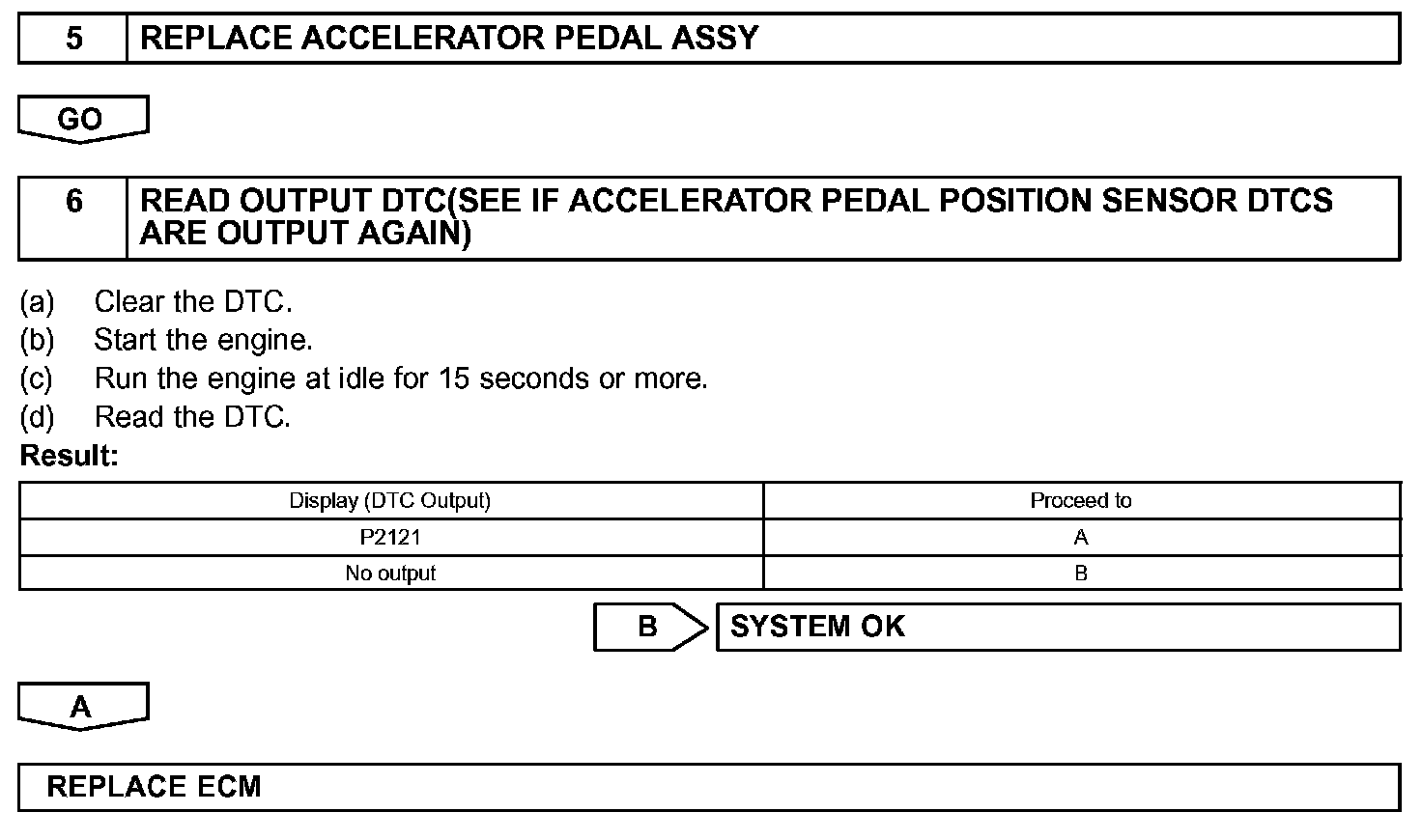 DTC P2121 THROTTLE/PEDAL POSITION SENSOR/SWITCH "D" CIRCUIT RANGE/PERFORMANCEHINT: This is the repair procedure for the accelerator pedal position sensor.