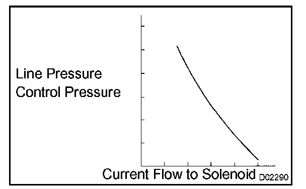 The ECM adjusts the duty cycle of the SLT solenoid valve to control hydraulic line pressure coming from the primary regulator valve. Appropriate line pressure assures smooth shifting with varying engine outputs.