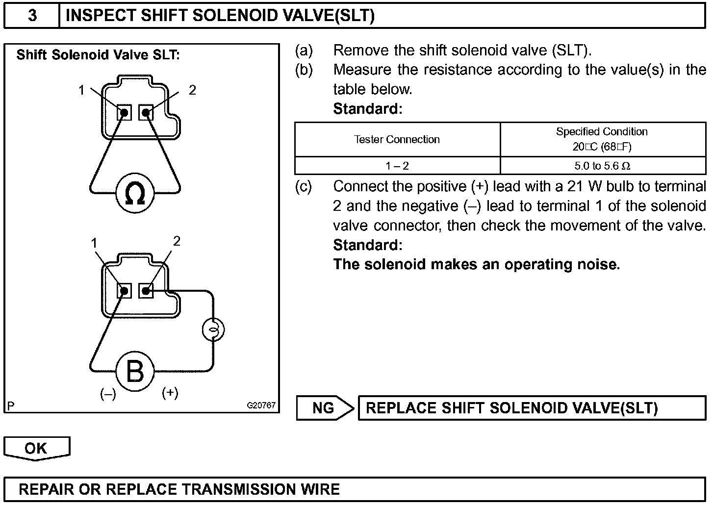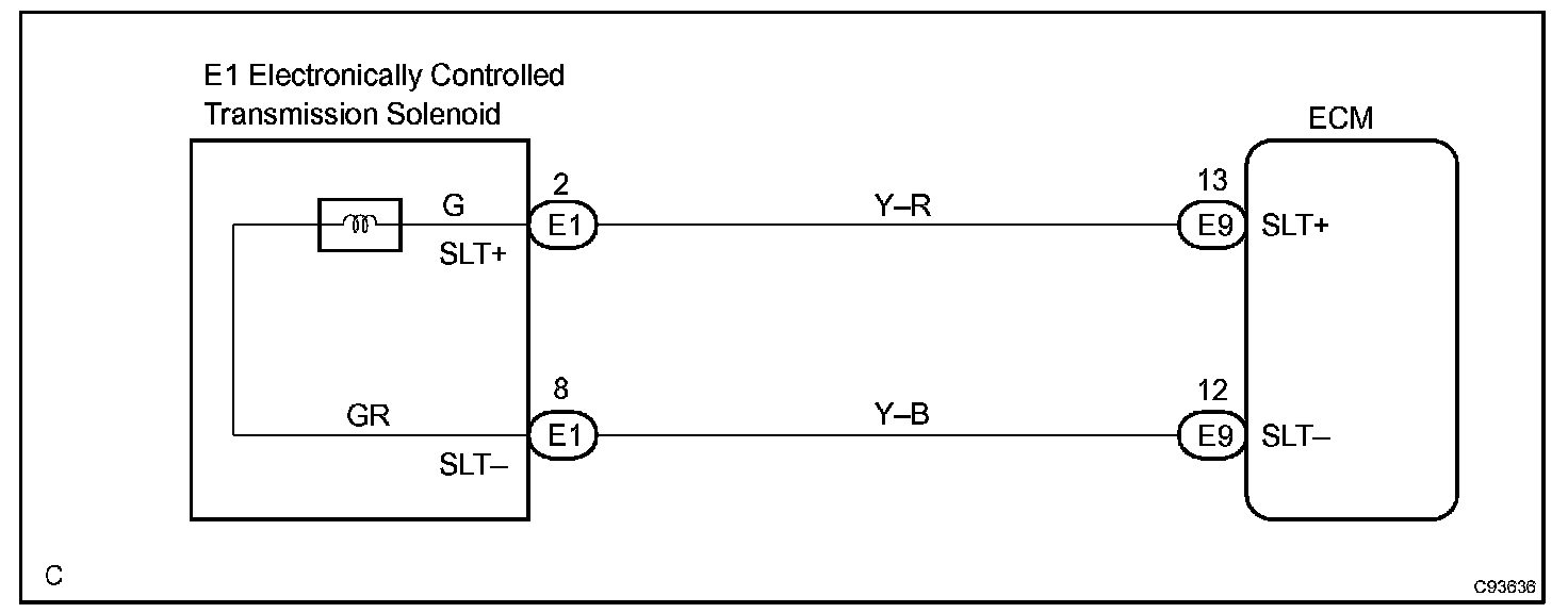 When an open or short in the linear solenoid valve (SLT) circuit is detected, the ECM interprets this as a fault.