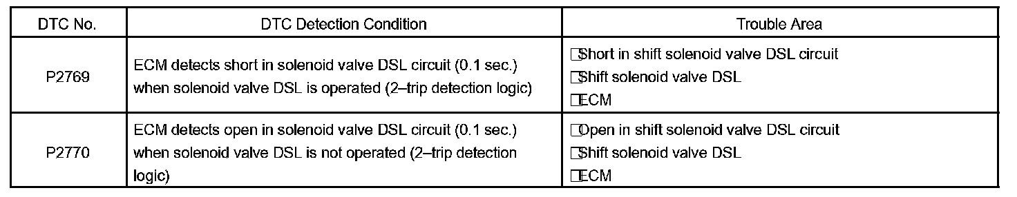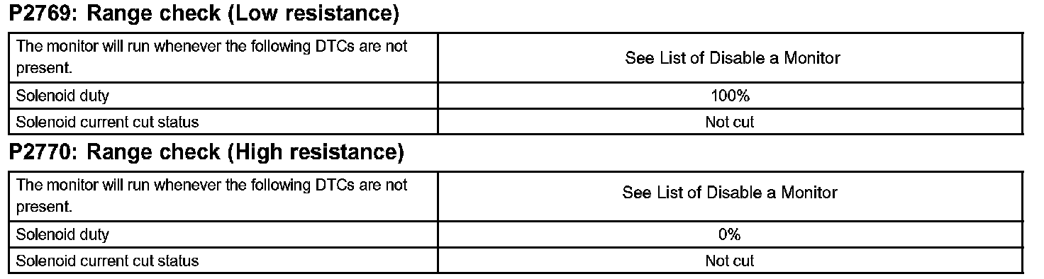 DTC P2769 TORQUE CONVERTER CLUTCH SOLENOID CIRCUIT LOW (SHIFT SOLENOID VALVE DSL)