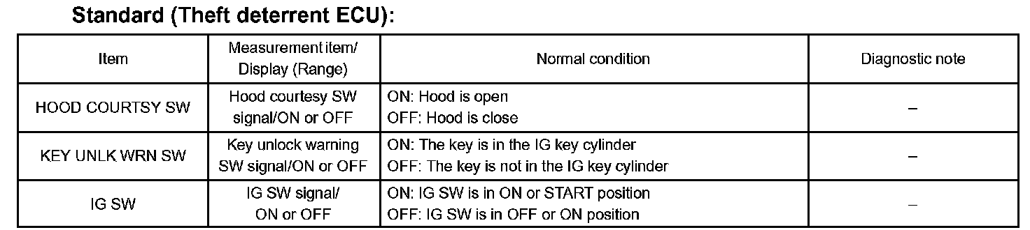 HINT: According to the DATA LIST displayed by the OBD II scan tool or hand-held tester, you can read the value of the switch, sensor, actuator and so on without parts removal. Reading the DATA LIST as a first step of troubleshooting is one of the method to shorten the labor time.