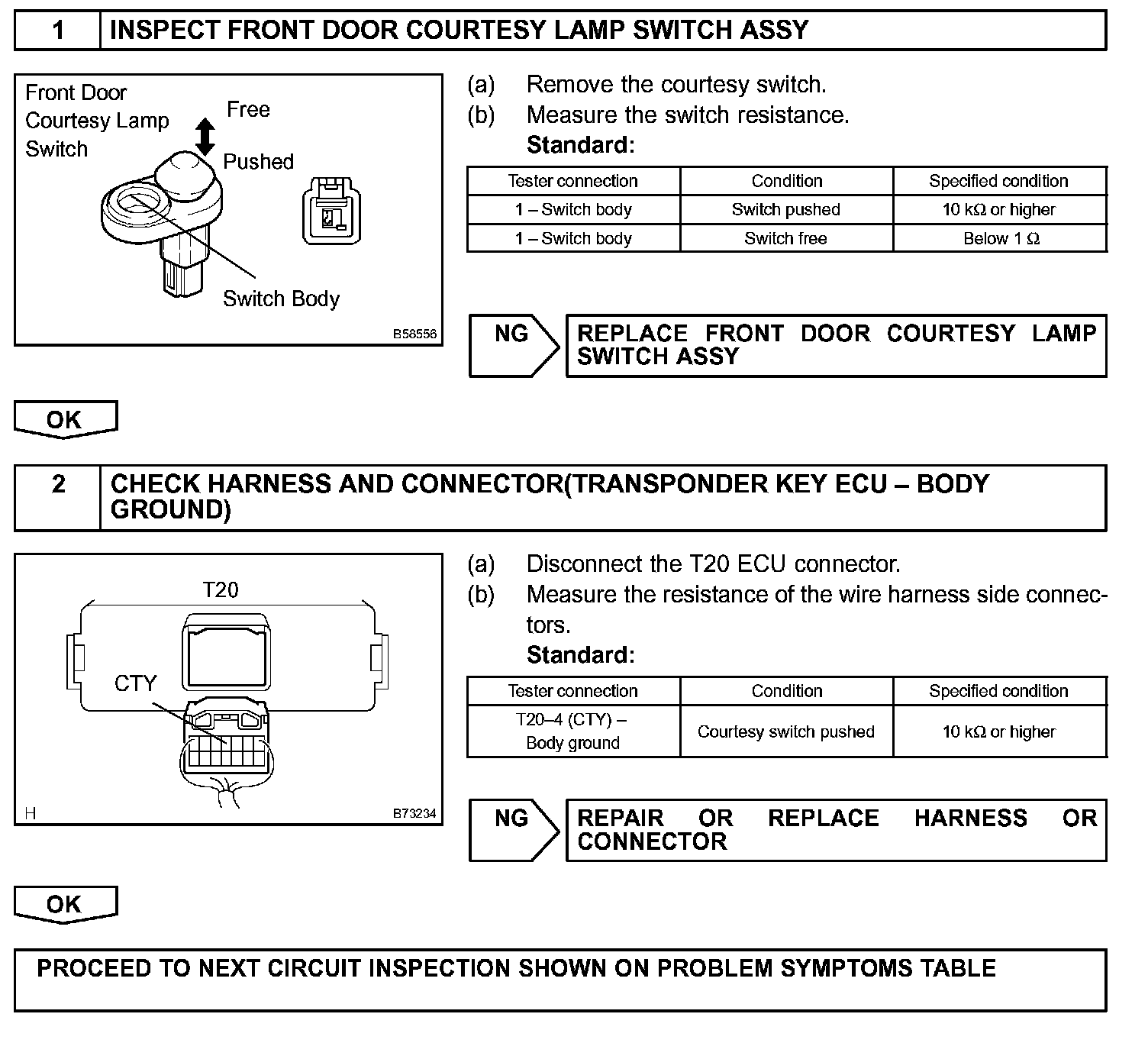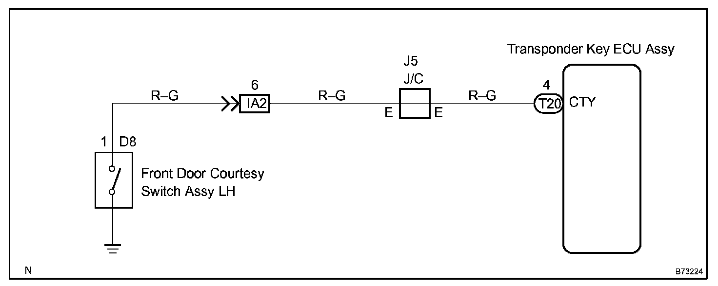 When an additional transponder key is registered, the transponder key ECU detects the door courtesy switch open/close condition, and enters the key registration mode.