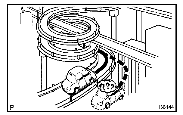 8. When the ignition switch is put into the ACC/OFF position on a turn table before parking, the current vehicle position mark may not point in the correct direction. The same will occur when the vehicle comes out of parking.