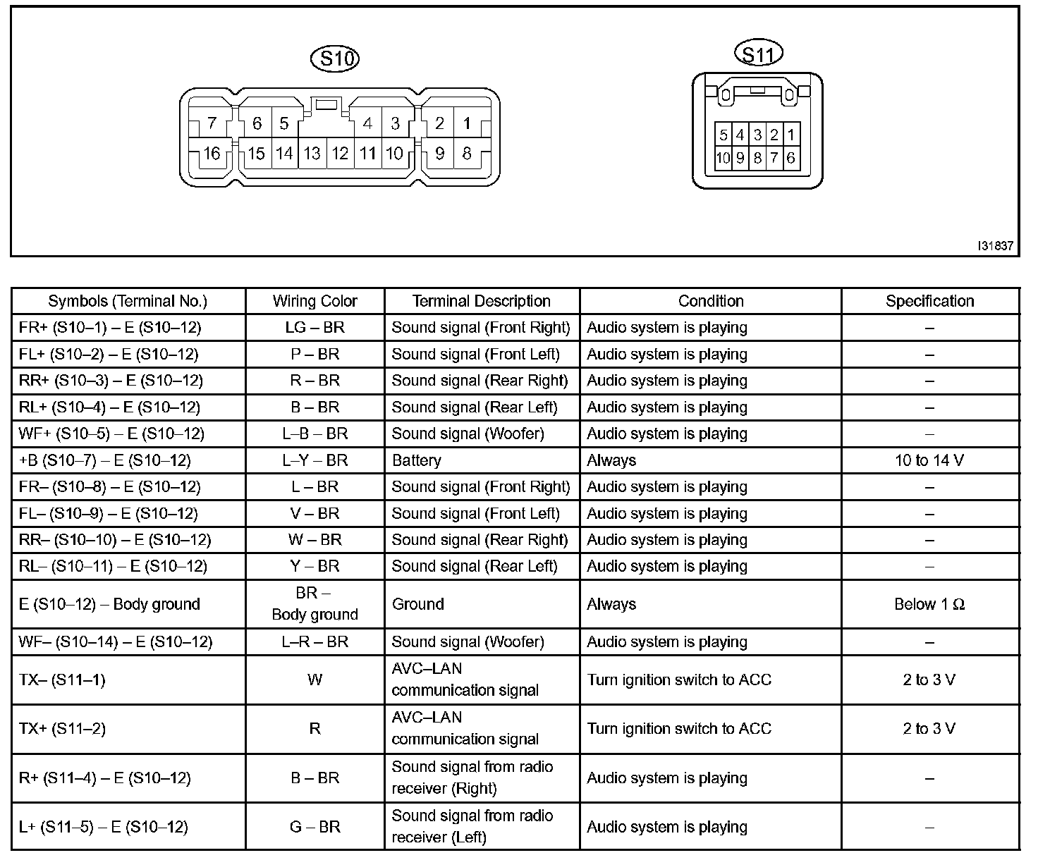 Terminals Of ECU/Pinouts - Stereo Component Amplifier Assy (Standard Models) Part 2:
