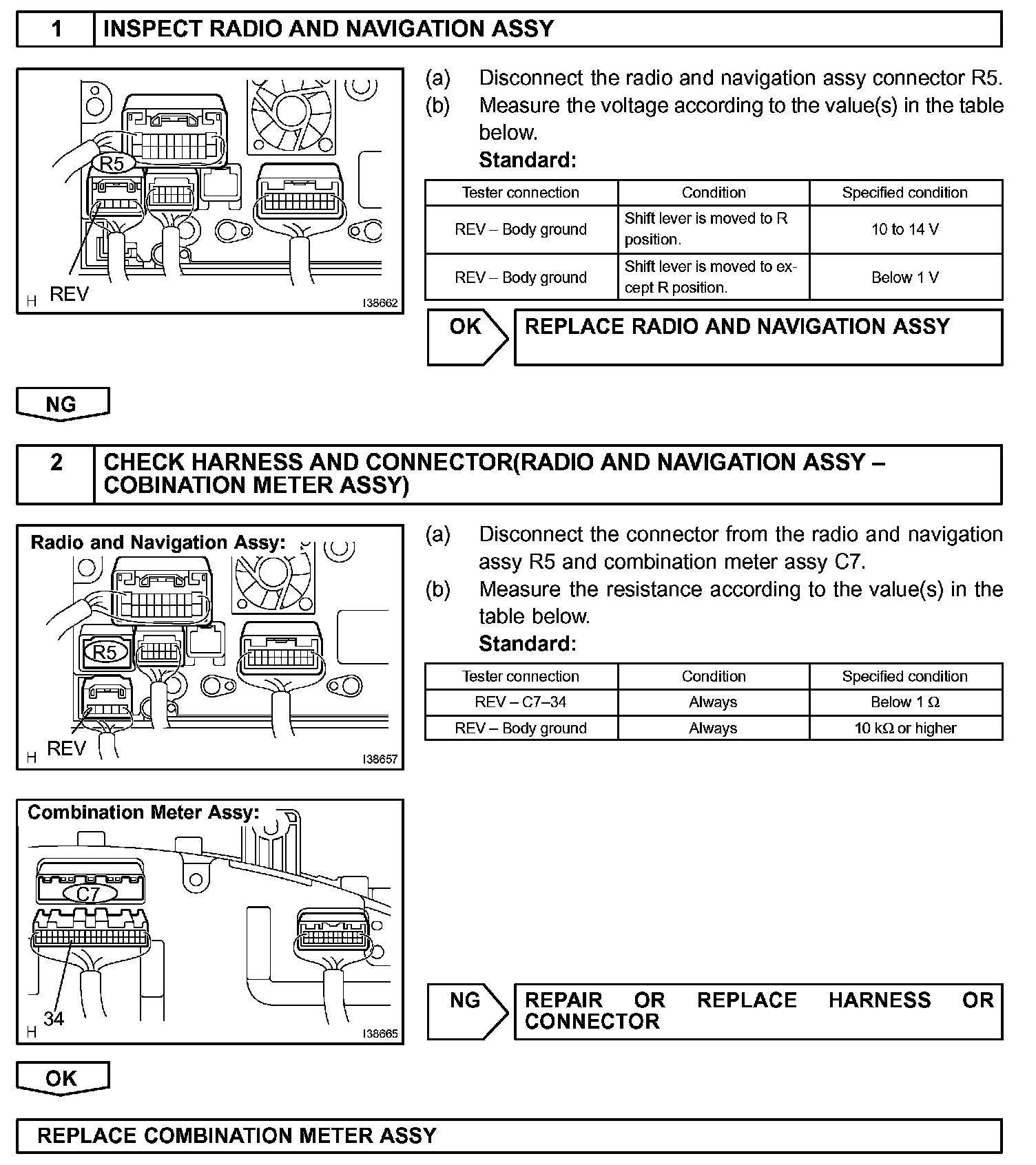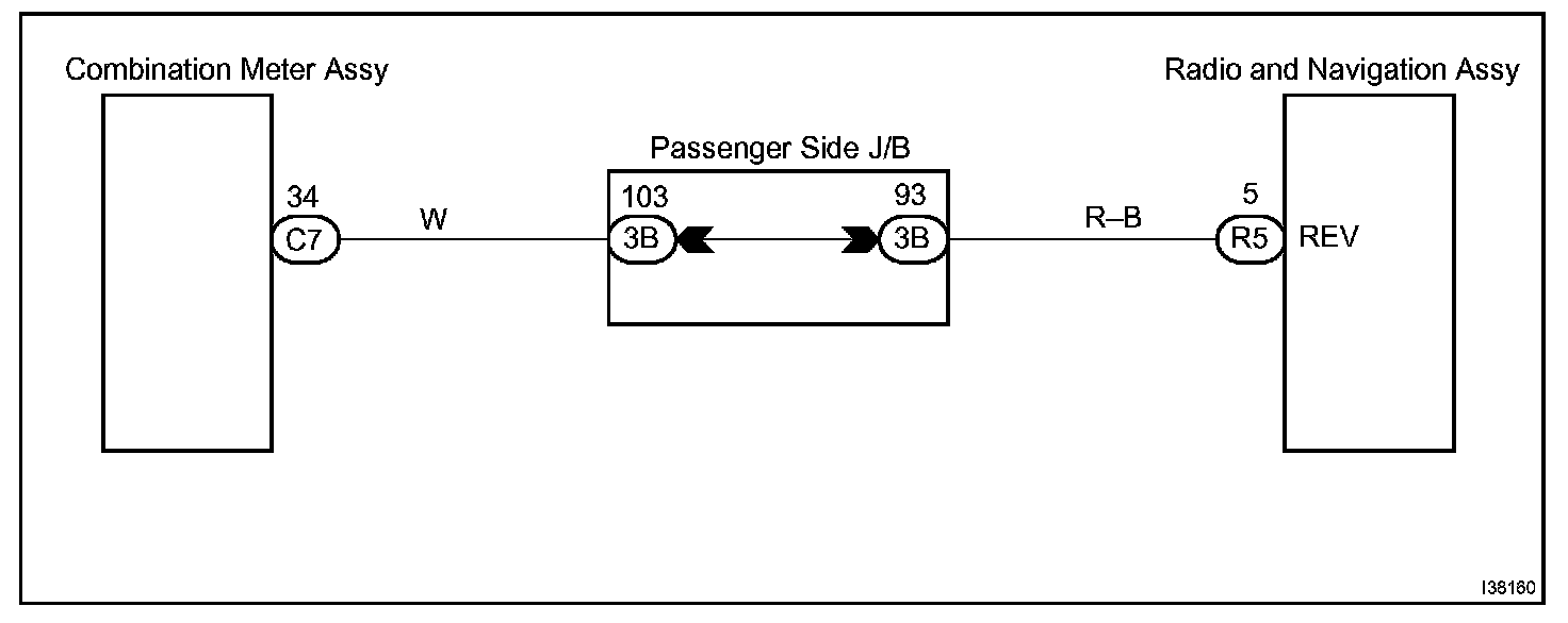 The navigation ECU (built in the radio and navigation assy) receives the reverse signal from the combination meter assy and information about the GPS antenna, and then adjusts the vehicle position.