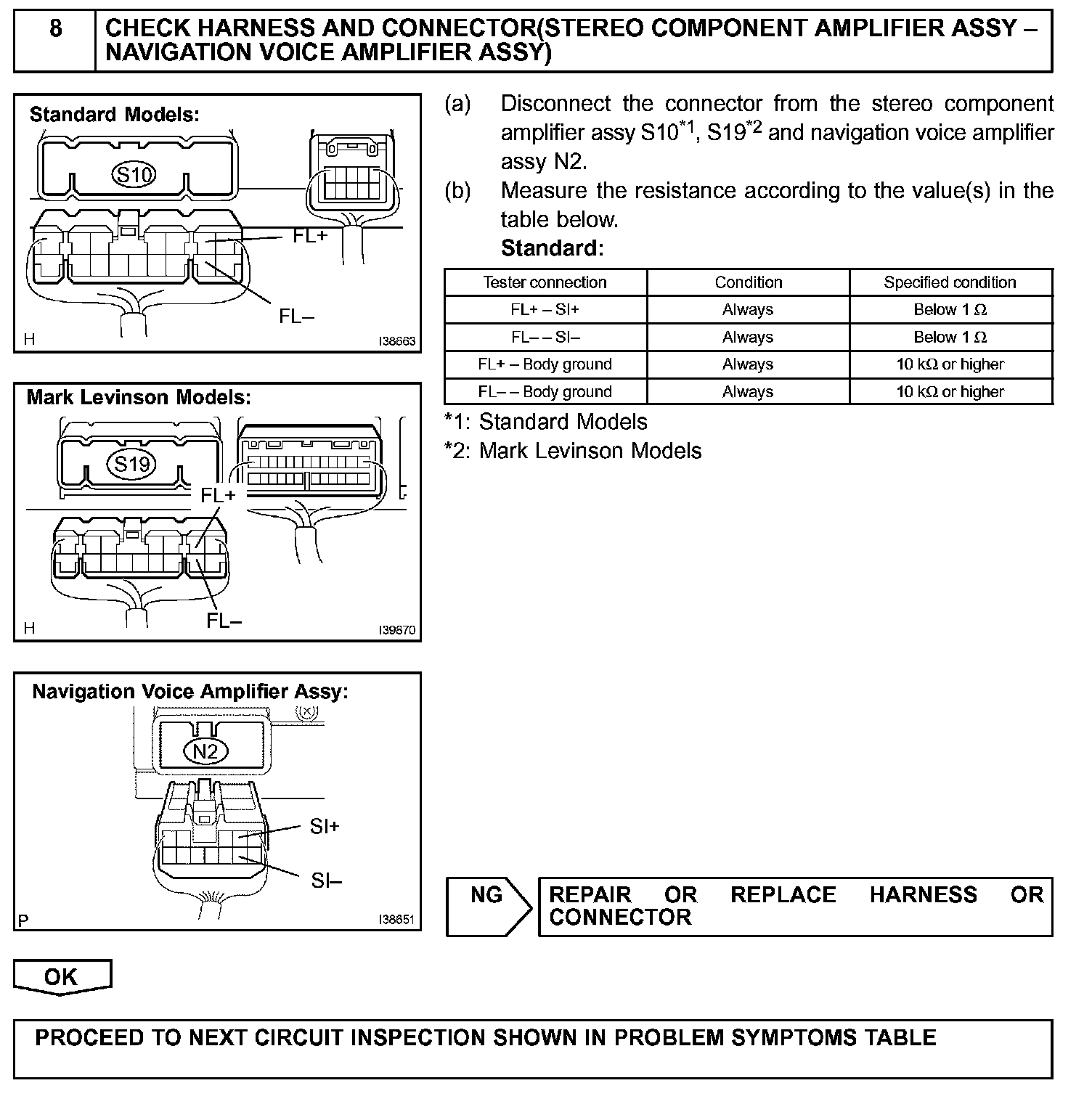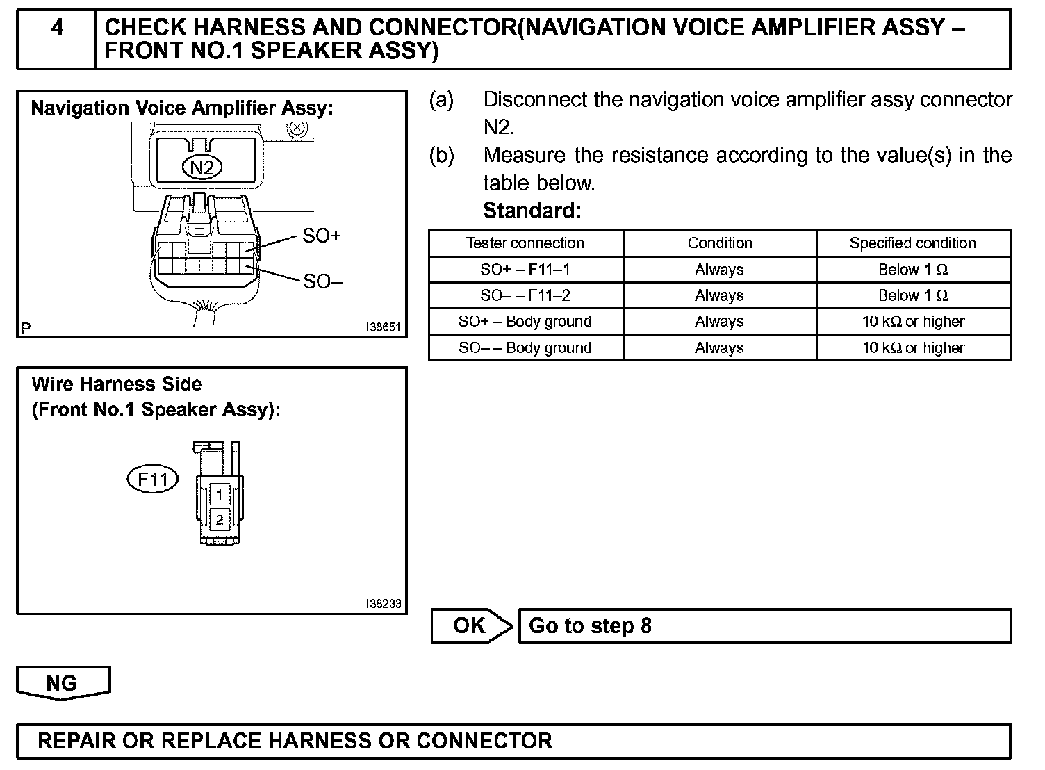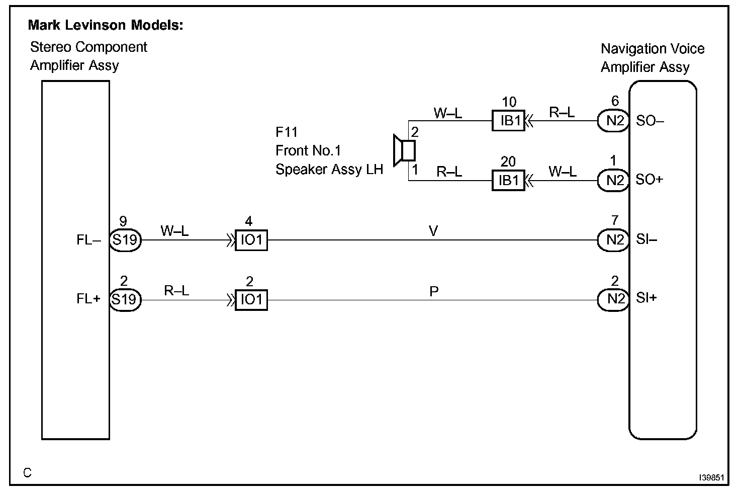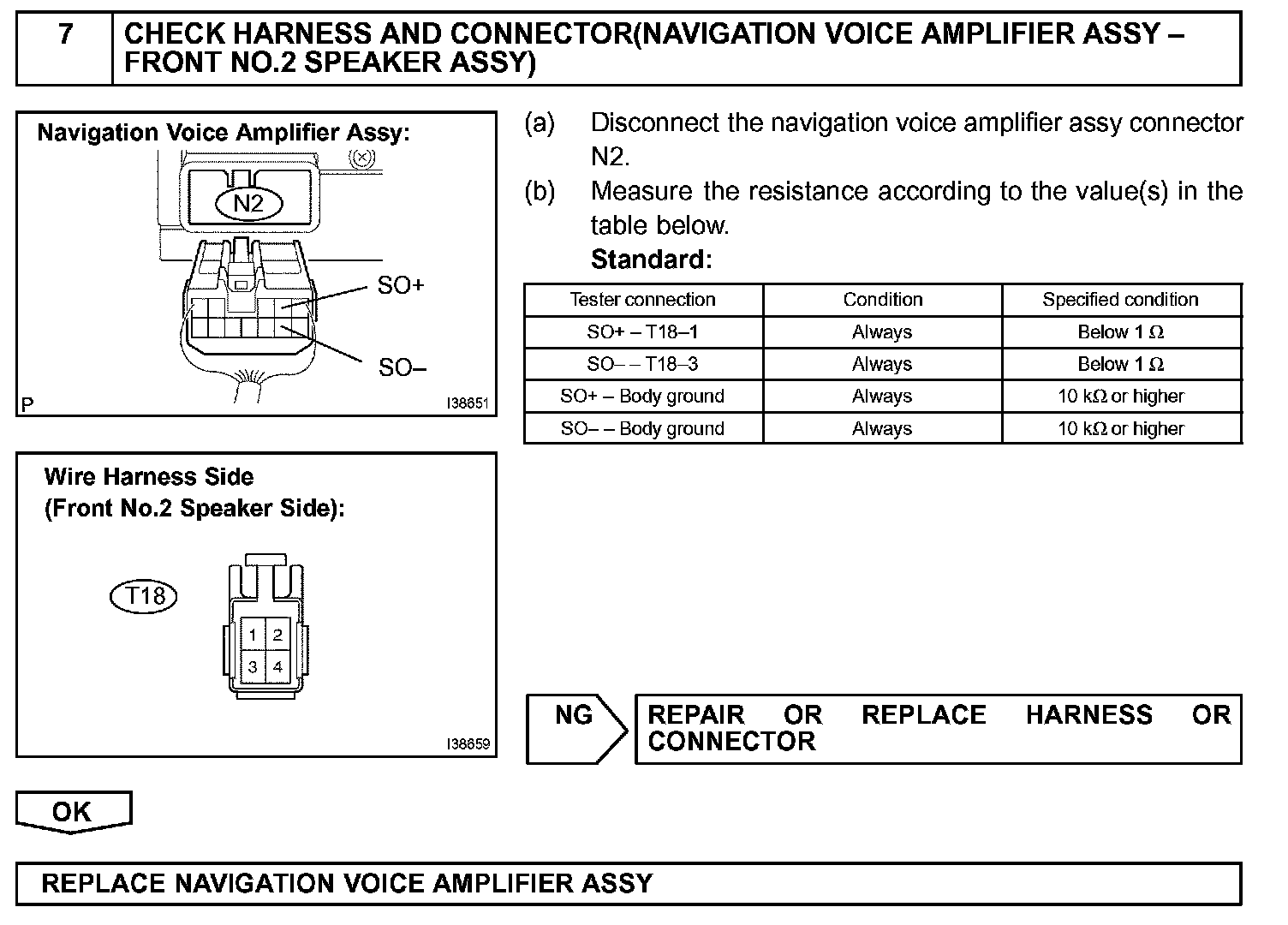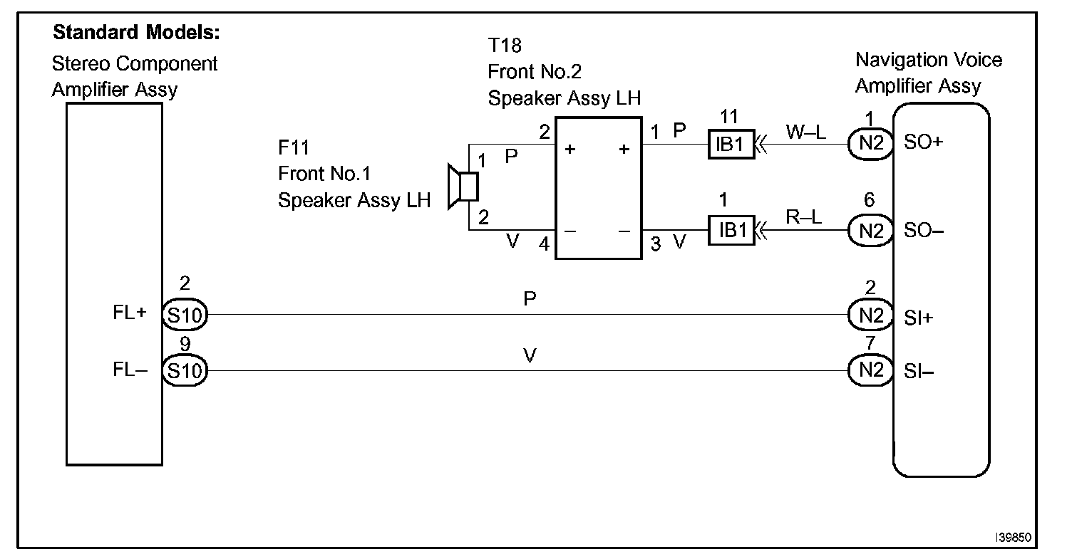 When the vehicle is equipped with a navigation system, a sound signal on the driver's side is sent to the speaker from the stereo component amplifier via the navigation voice amplifier assy.