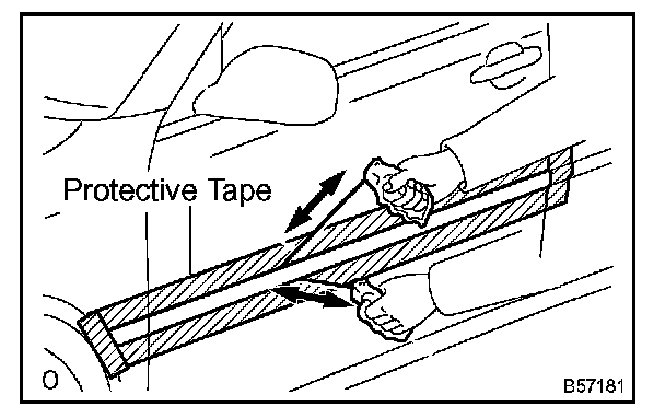 4. Apply new adhesive tape to the moulding as shown in the illustration.