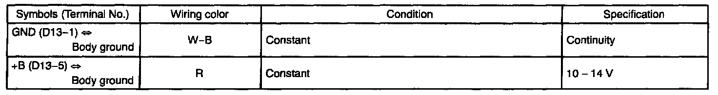 a. Disconnect the D13 receiver connector and check that the connector on the wire harness side.