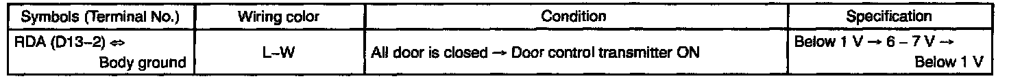 1. Check that doors are not locked or unlocked by the switch while the key is in the ignition key cylinder. However, the time of the discrimination code registration mode is excepted.