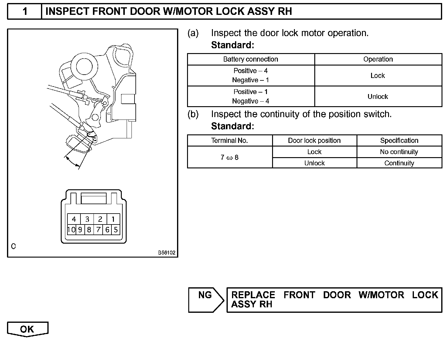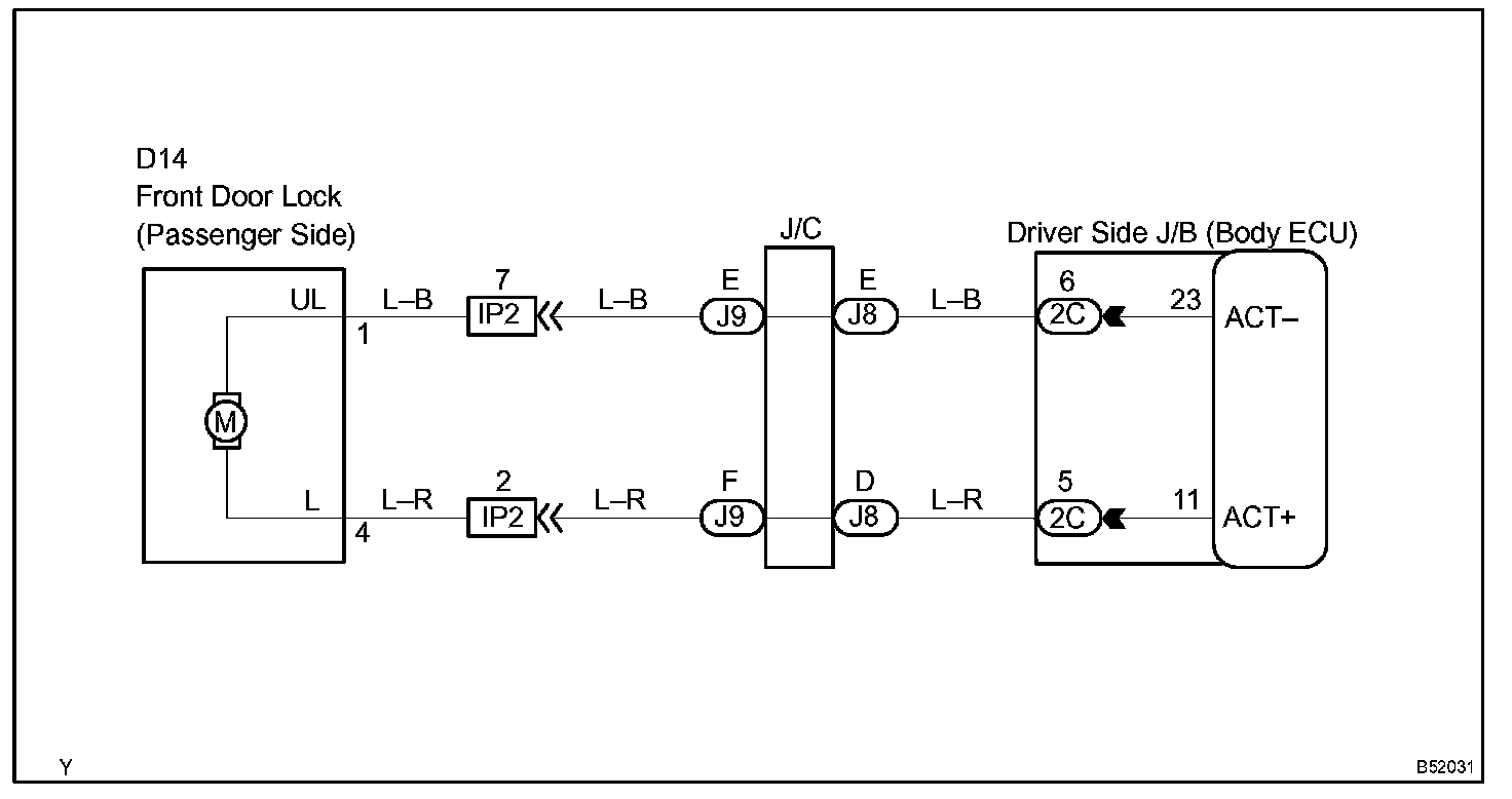 The body ECU receives a switch signal from the master switch and the driver's door key, and then passenger the door lock motor.