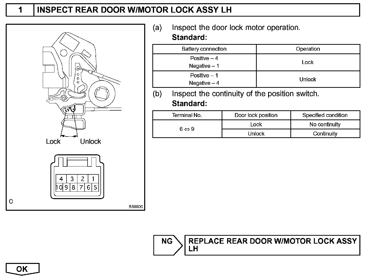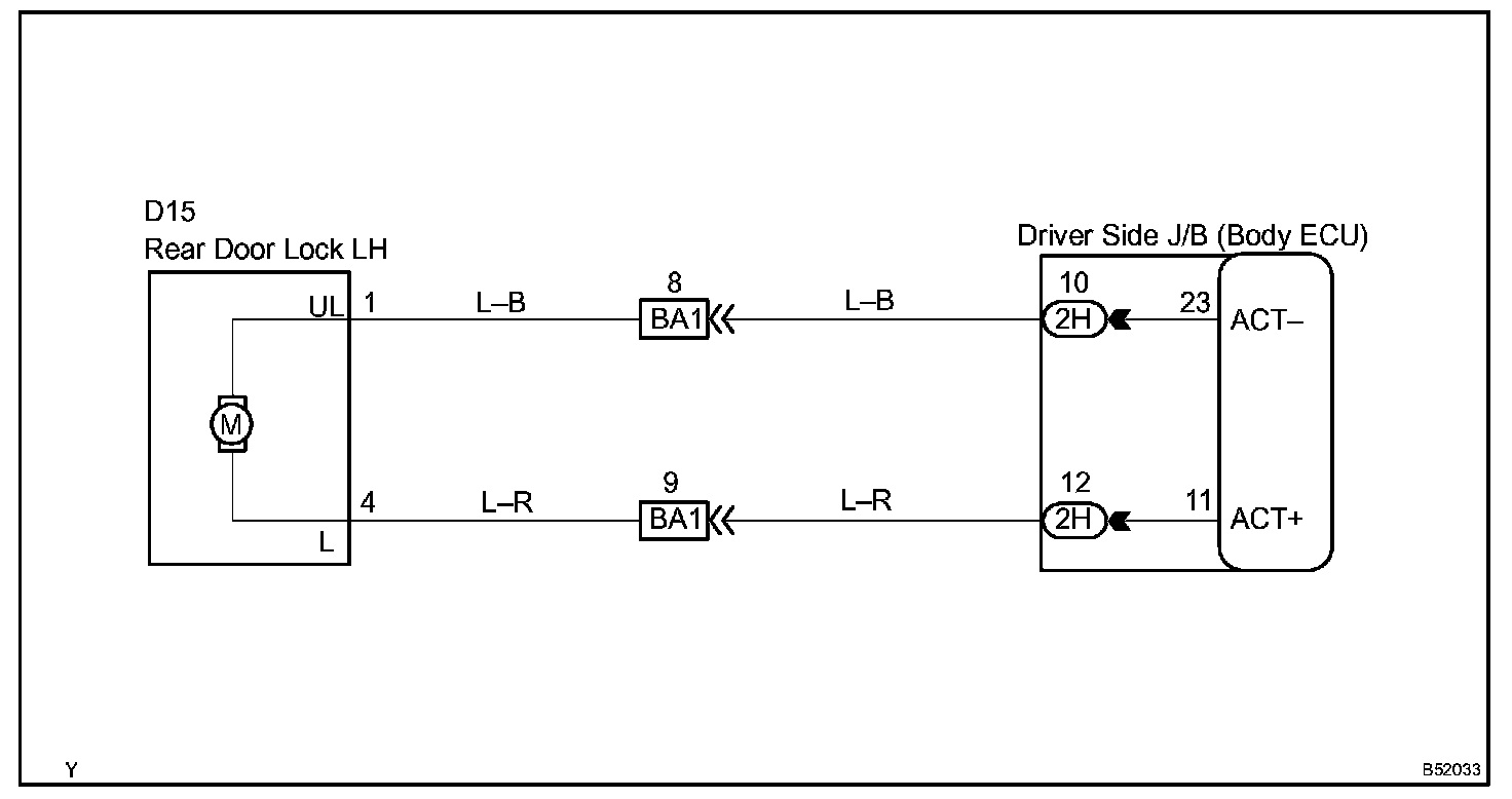 The body ECU receives a switch signal from the master switch and the driver's door key, and then rear LH the door lock motor.