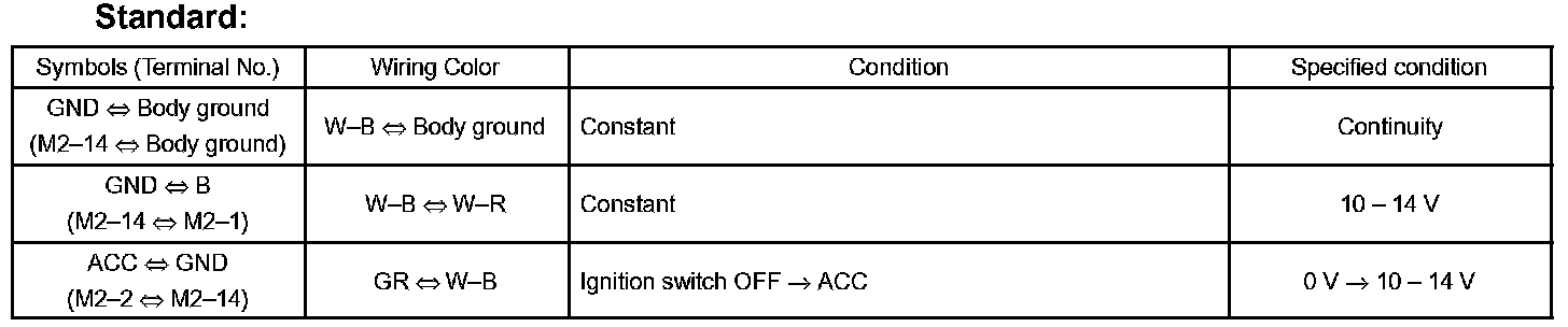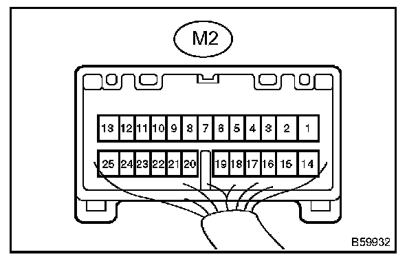 c. Connect the M2 connector, and check the voltage between each terminal of the connector.