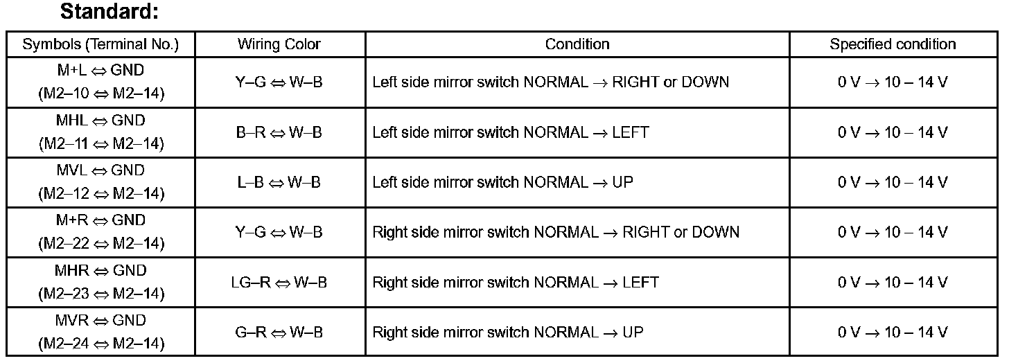 HINT: If the value is not as specified, a malfunction exists in the outer mirror control ECU assy.