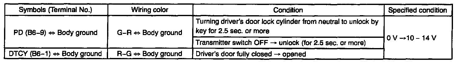 g. Check the operation function via the Driver's door key (interlocked operation with key).