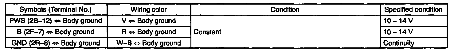b. Check the continuity and voltage between each terminal of the wire harness side connector.