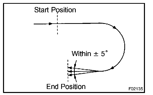 - Drive the vehicle in a 180 ° circle. At the end of the turn, ensure that the vehicle is exactly 180 ° within a tolerance of ± 5 °, and facing the other direction from its original start position.