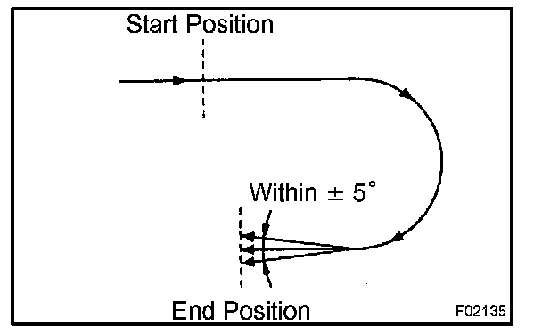 1. Shift the shift lever to the D position and drive the vehicle at a speed of approx. 3 mph (5 km/h), turn the steering wheel either to the left or right 90 ° or more, and maintain a 180 ° circular drive for the vehicle.