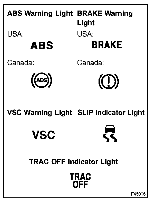 - If the ECU has any stored DTCs, the ABS warning light, VSC warning light and TRAC OFF indicator light come on.