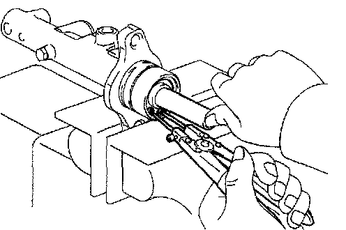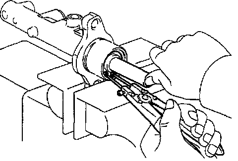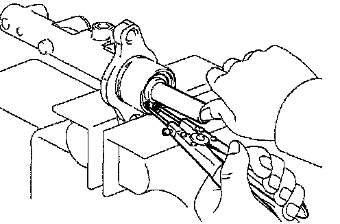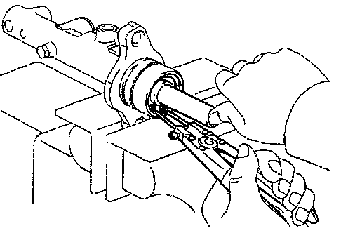 c. Push in the piston and remove the snap ring with snap ring pliers.