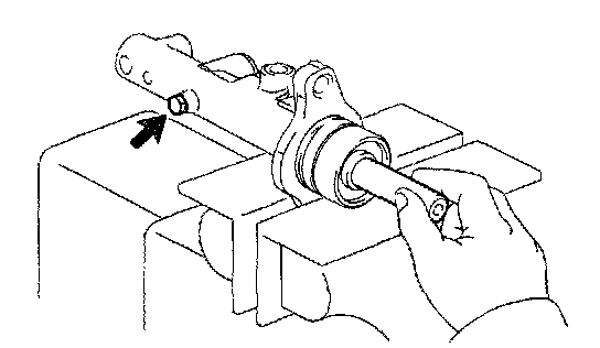 d. Push in the piston with a screwdriver, and remove the straight pin by turning over the cylinder body.