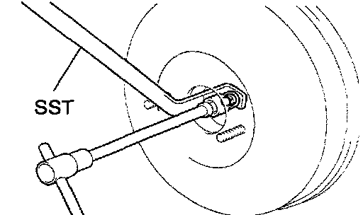 b. Set SST, on the master cylinder, lower the pin of the SST until it slightly touches the piston.