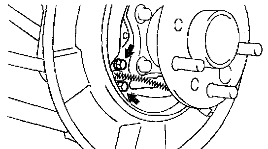 4. REMOVE PARKING BRAKE SHOE RETURN TENSION SPRING