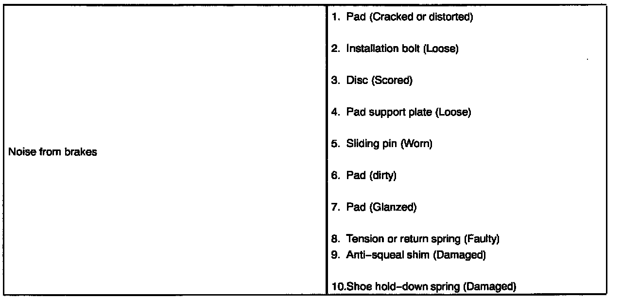 Use the table shown to help you find the cause of the problem. The numbers indicate the priority of the likely cause of the problem. Check each part in order. If necessary, replace these parts.
