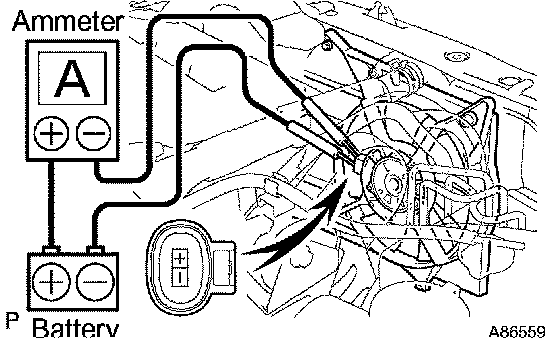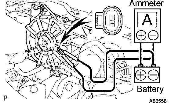 b. Connect the battery and ammeter to the No. 2 fan connector.