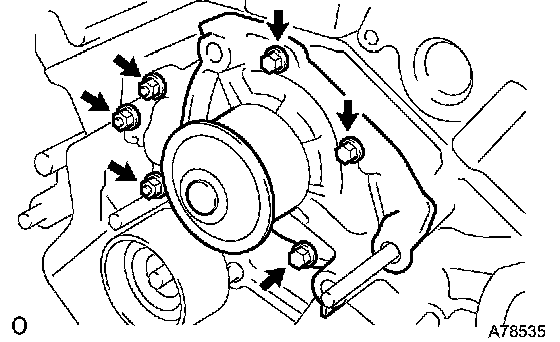 a. Install a new gasket and the water pump with the 3 bolts and 3 nuts.