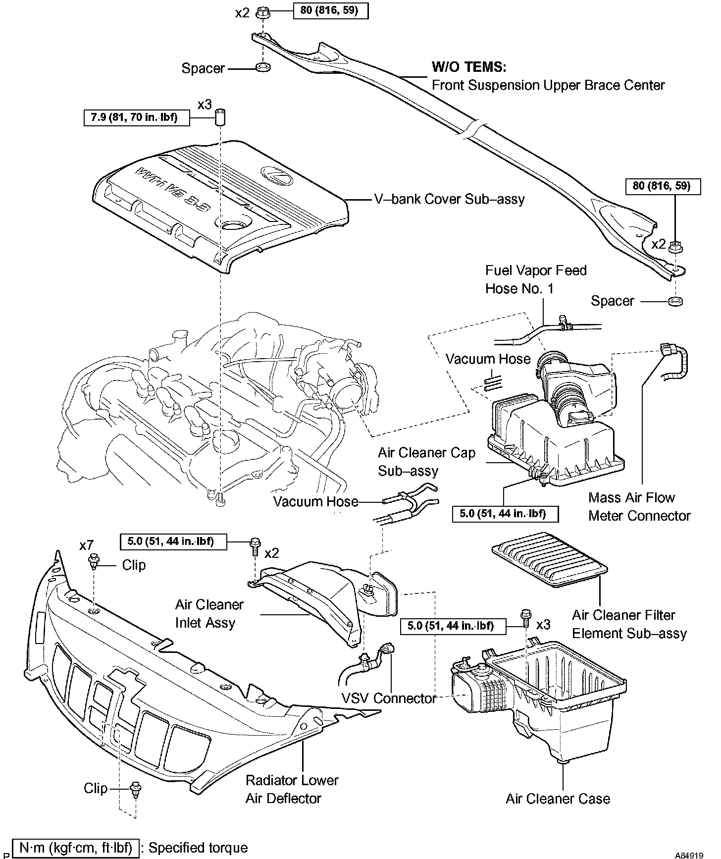 7. REMOVE FRONT SUSPENSION UPPER BRACE CENTER (W/O TEMS)