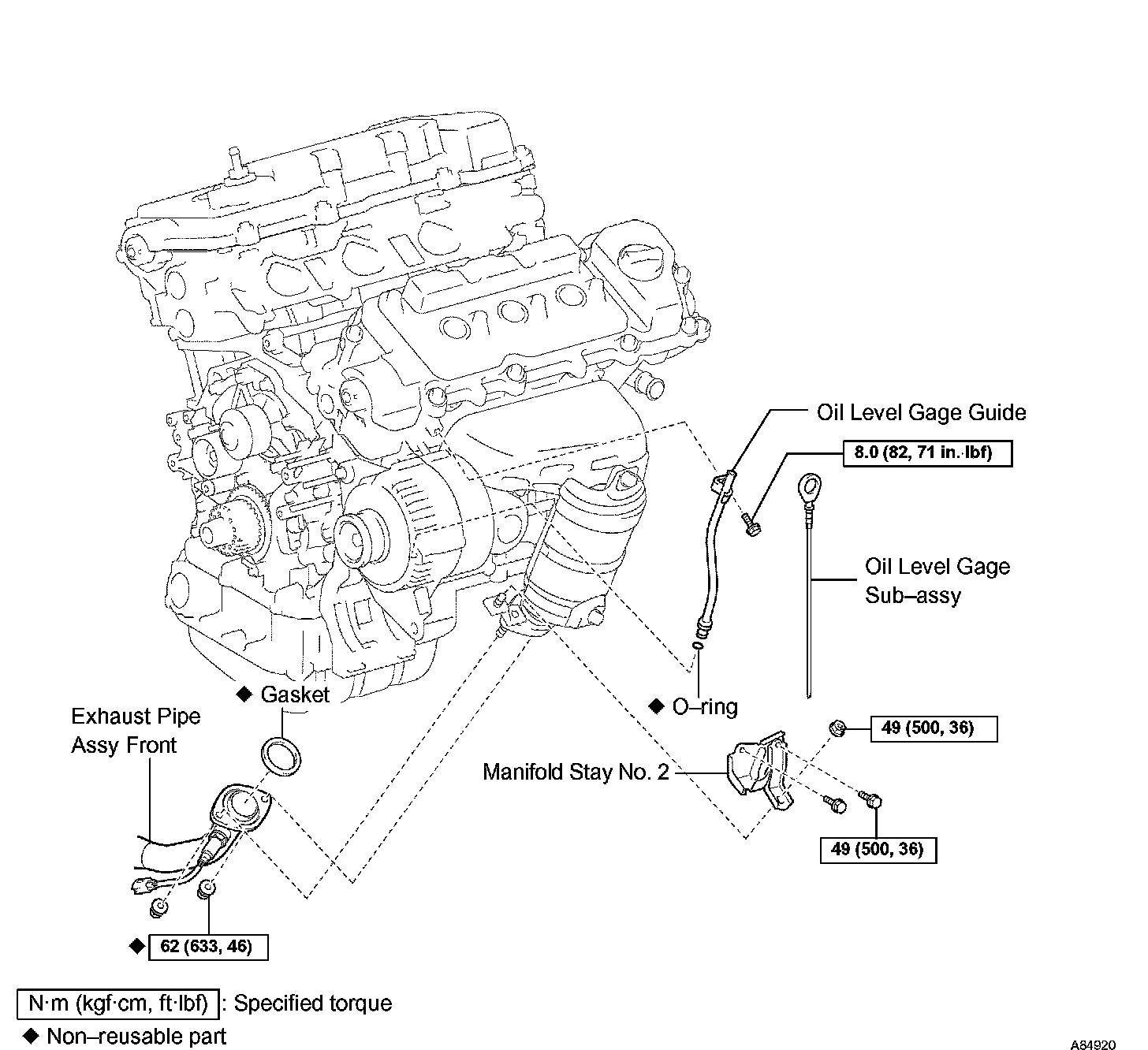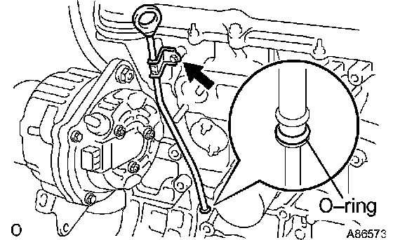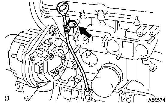 b. Pull out the oil level gage guide and oil level gage together from the cylinder block.