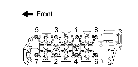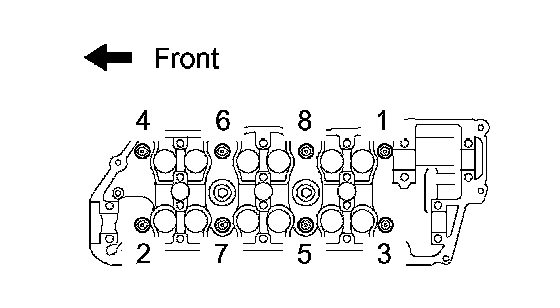 g. Using several steps, loosen the 8 cylinder head bolts uniformly in the sequence shown in the illustration.