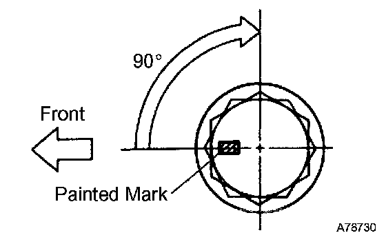 d. Mark the front side of each cylinder head bolt head with paint as shown in the illustration.