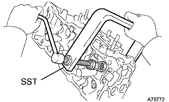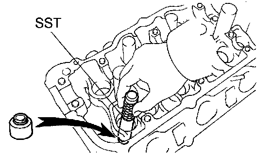 a. Using SST, compress the spring, then remove the 2 retainer locks, retainer, spring and valve.