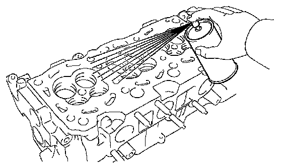 a. Using a dye penetrate, check the combustion chamber, intake ports, exhaust ports and cylinder block surface for cracks.