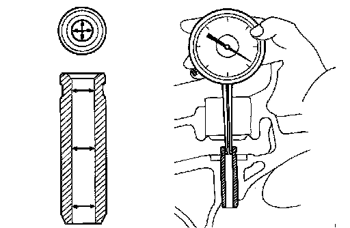 a. Using a caliper gauge, measure the inside diameter of the valve guide bush.