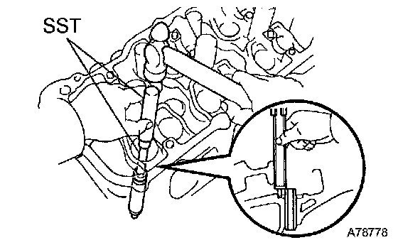 b. Using SST, compress the spring and place the 2 retainer locks around the valve stem.
