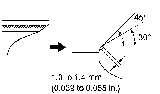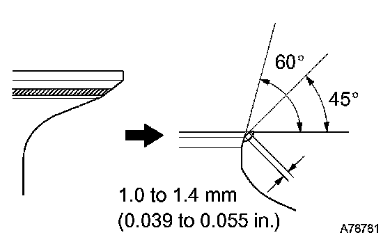 3. Check that the seat contact is in the middle of the valve face with the width between 1.0 and 1.4 mm (0.039 to 0.055 inch).