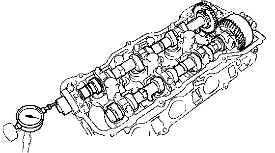 b. Using a dial indicator, measure the thrust clearance while moving the camshaft back and forth.
