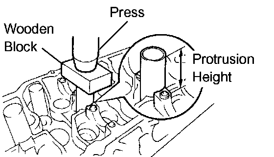 c. Using a press and wooden block, install the spark plug tube to the required protrusion height.