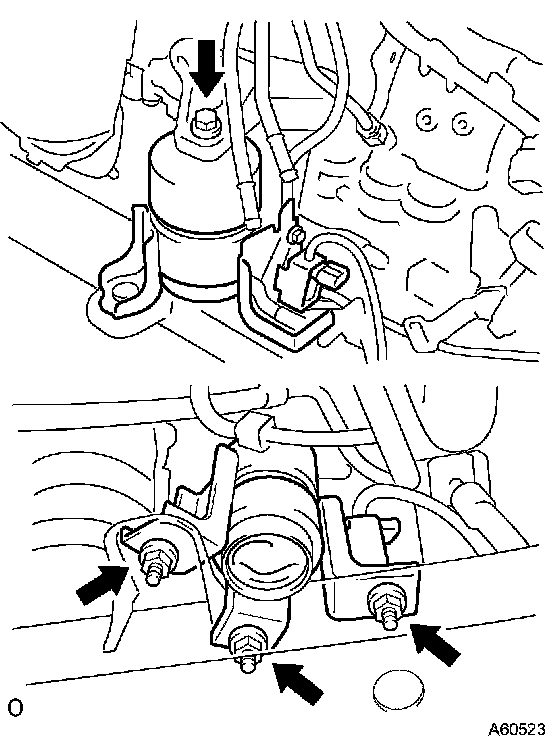 a. Remove the 3 nuts and bolt, then separate the engine mounting insulator FR.