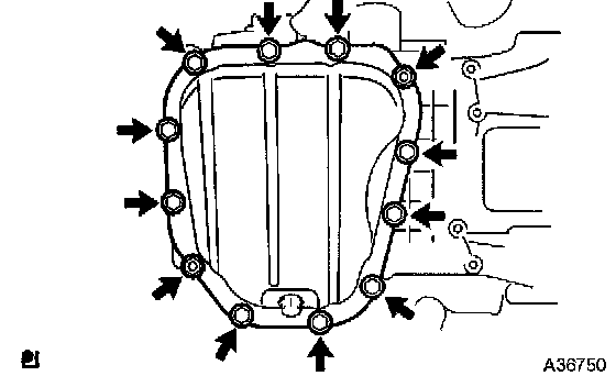 ^ Do not damage the flange portion of the oil pan No. 2 when removing.