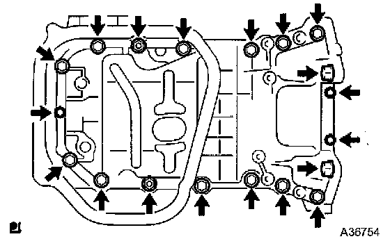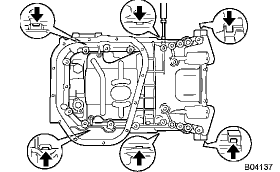 ^ Install the oil pan within 3 minutes after applying seal packing.