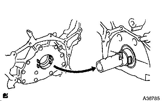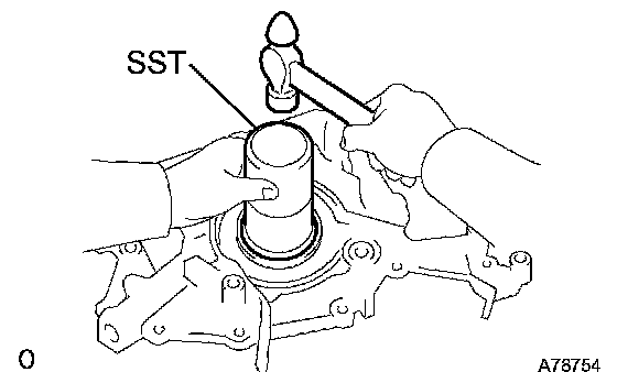 a. Using SST and a hammer, tap in the new oil seal until its surface is flush with the oil pump body edge.