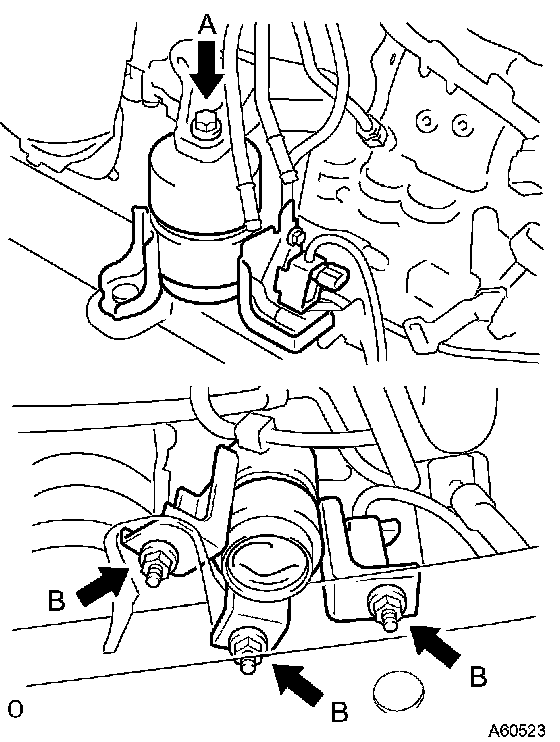 43 Nm (438 kgf-cm, 32 ft. lbs.) for nut A