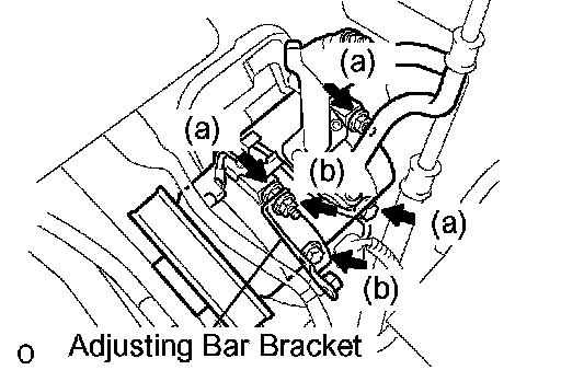 a. Remove the bolt and nut, then remove the adjusting bar bracket.